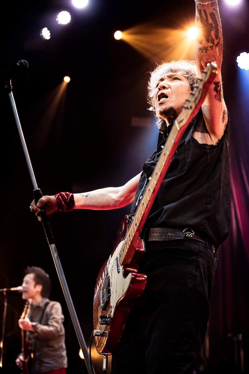 しかし当然、これで終われるはずもなく、すぐさま沸き起こったモッズコールに戻ってきた4人。ファンへの感謝を述べた後、「このツアーが上手くいけば、またこのスタイルで来年もやれると思う。なんてたって45周年なんでね。ただ、日比谷の野音が工事に入って、ちょっと使えないっていうのが悲しいところなんですけど。とりあえず何かの形ではやりたいと思うんで、それまで元気でいてください」と告げた。1stアンコールでは、極上のバラッド(『バラッドをお前に』)に加えて、周のドラムがイントロから爆発。バンドのスターターへと着火(『壊れたエンジン』)すれば、スパークラーも噴き上がり、シャララの大合唱で締めくくった『LONDON NITE』まで、一気に3曲。それでも鳴り止まないコールに応えて、再び登場したダブルアンコールでは、戻るやいなや「TWO PUNKS!」と叫び、フロアにも歌声を求めていった。