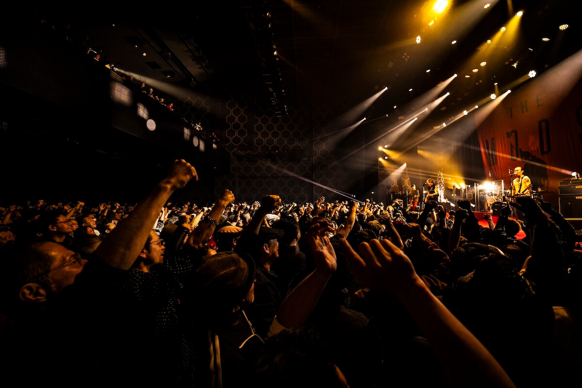 話は11月22日に戻る。開演数十分前から巻き起こる“恒例のモッズコール”が、オープニングSE──映画「タクシードライバー」のサントラ『God’s Lonely Man』──を掻き消すほどに高まった。その瞬間、投下されたのは最新曲『HURRICANE HURRICANE』。まさに“死刑台”から戻ってきたと歌う彼らの“いま”を象徴する曲だ。怒号のようなoiコールが、そのままバックビートとなって、バンドの心臓を動かしていく。<一度は折れた 心吠え出す/何度も泣いた 夜が輝く><燃えて燃えろ 灰まで/生きて生きろ 死ぬまで>──そんな、過去も未来も、すべてを含んだ“今の曲から始めるのだ”という、この気概。それだけでもう先述の“最高だった”の意味がわかってもらえるのではないだろうか。しかも…この日のアウトロのドラムのフレーズ。音源で聴いたときは思わなかったが、こうして、ライヴという場で、この“SEからの流れの中で”聴いてみると、“God’s Lonely Man”由来のフレーズなのでは?とも思えてくる。というのも、件のSEは独特のドラム・フレーズが印象的で、映画の主人公であるトラヴィスの孤独感や疎外感を象徴した曲として知られているからだ。まさに“闇のフチ”にいるような曲。であればなおさら、それを『HURRICANE HURRICANE』で打ち破ることには意味がある。